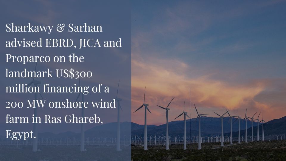 EBRD, JICA and Proparco on the landmark US$300 million financing of a 200 MW onshore wind farm in Ras Ghareb, Egypt Gallery EBRD, JICA and Proparco on the landmark US$300 million financing of a 200 MW onshore wind farm in Ras Ghareb, Egypt Client Alerts EBRD, JICA and Proparco on the landmark US$300 million financing of a 200 MW onshore wind farm in Ras Ghareb, Egypt Toka Hassan2025-10-16T13:51:59+03:0016/10/2025| Read More